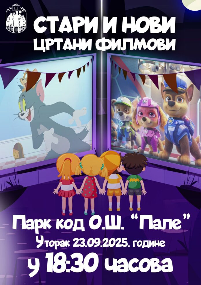 Гледање цртаних филмова на отвореном у парку поред Основне школе „Пале“ биће организовано у уторак, 23. септембра, од 18.30 часова.