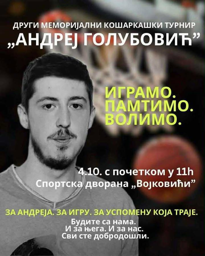 Други меморијални кошаркашки турнир у част Андреја Голубовића одржаће се 4. октобра у Спортској дворани „Војковићи“.