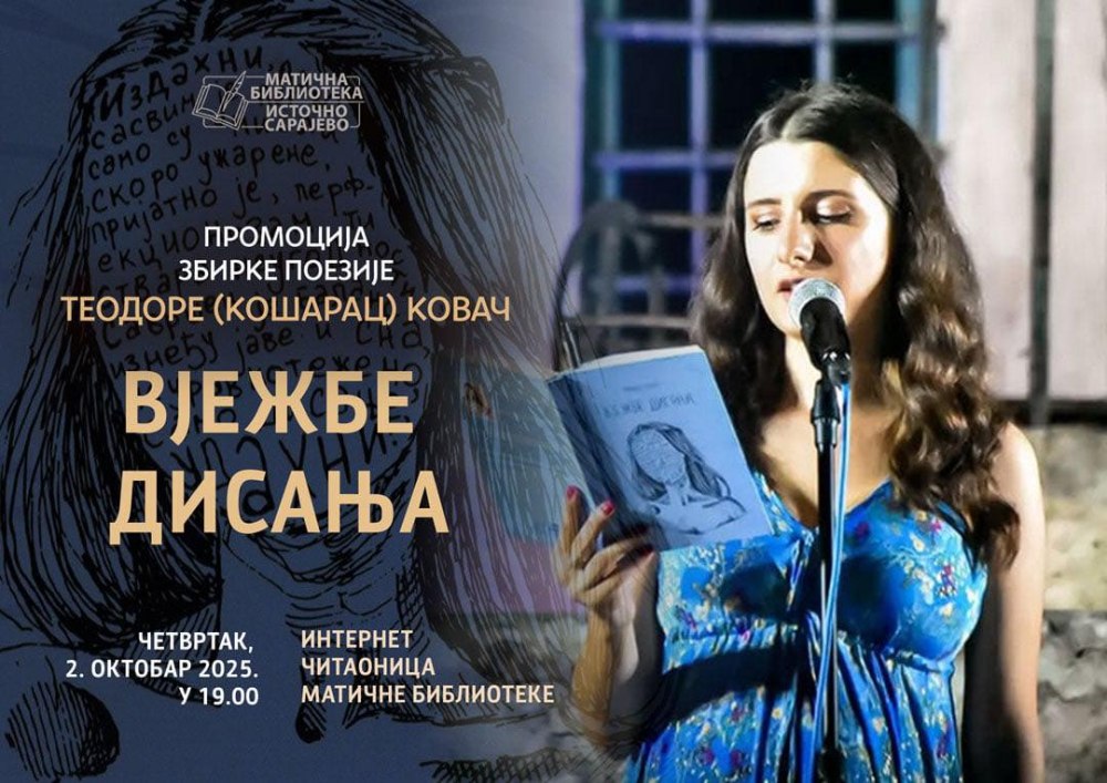 Матична библиотека Источно Сарајево у четвртак, 2. октобра, организује промоцију збирке поезије „Вјежбе дисања“ ауторке Теодоре Ковач.