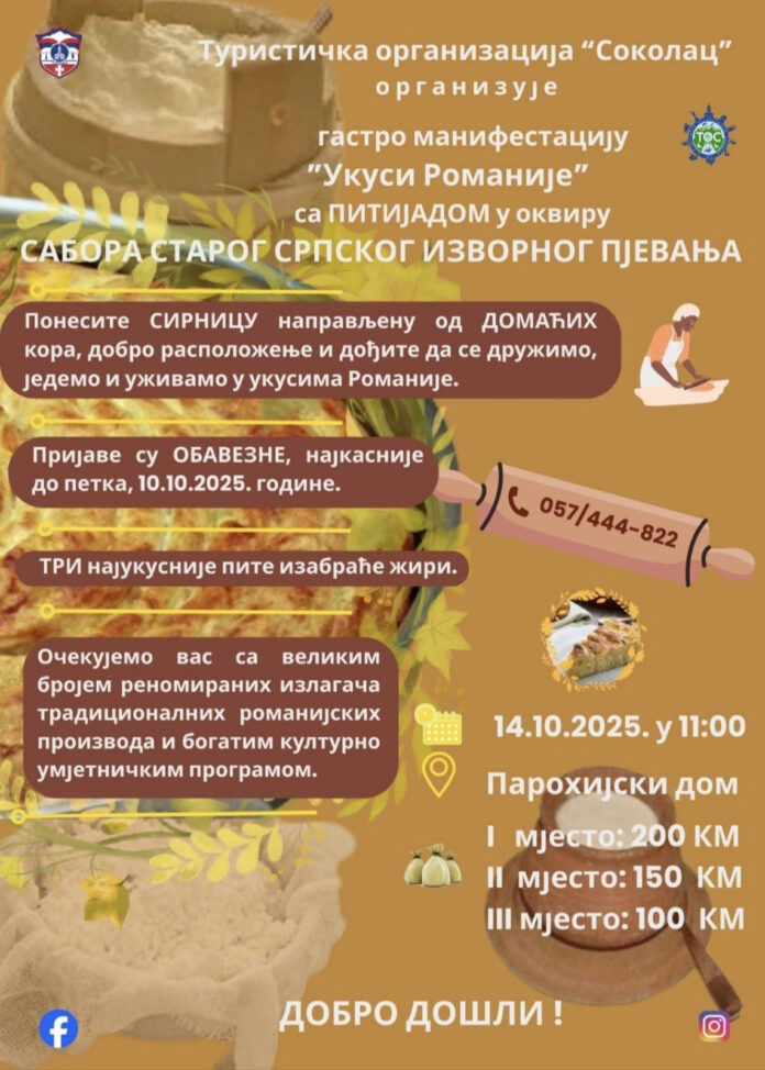 Туристичка организација Соколац организује гастро манифестацију „Укуси Романије“ – 057. ГР