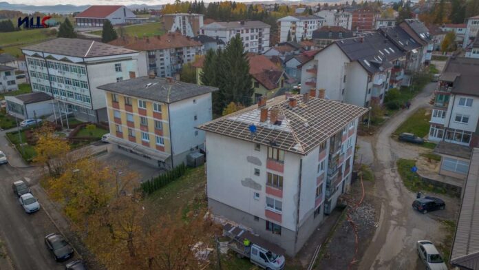 току су завршни радови на замјени комплетне кровне конструкције стамбене зграде у Романијској улици коју су финансијски подржали етажни власници ове зграде и Општина Соколац.