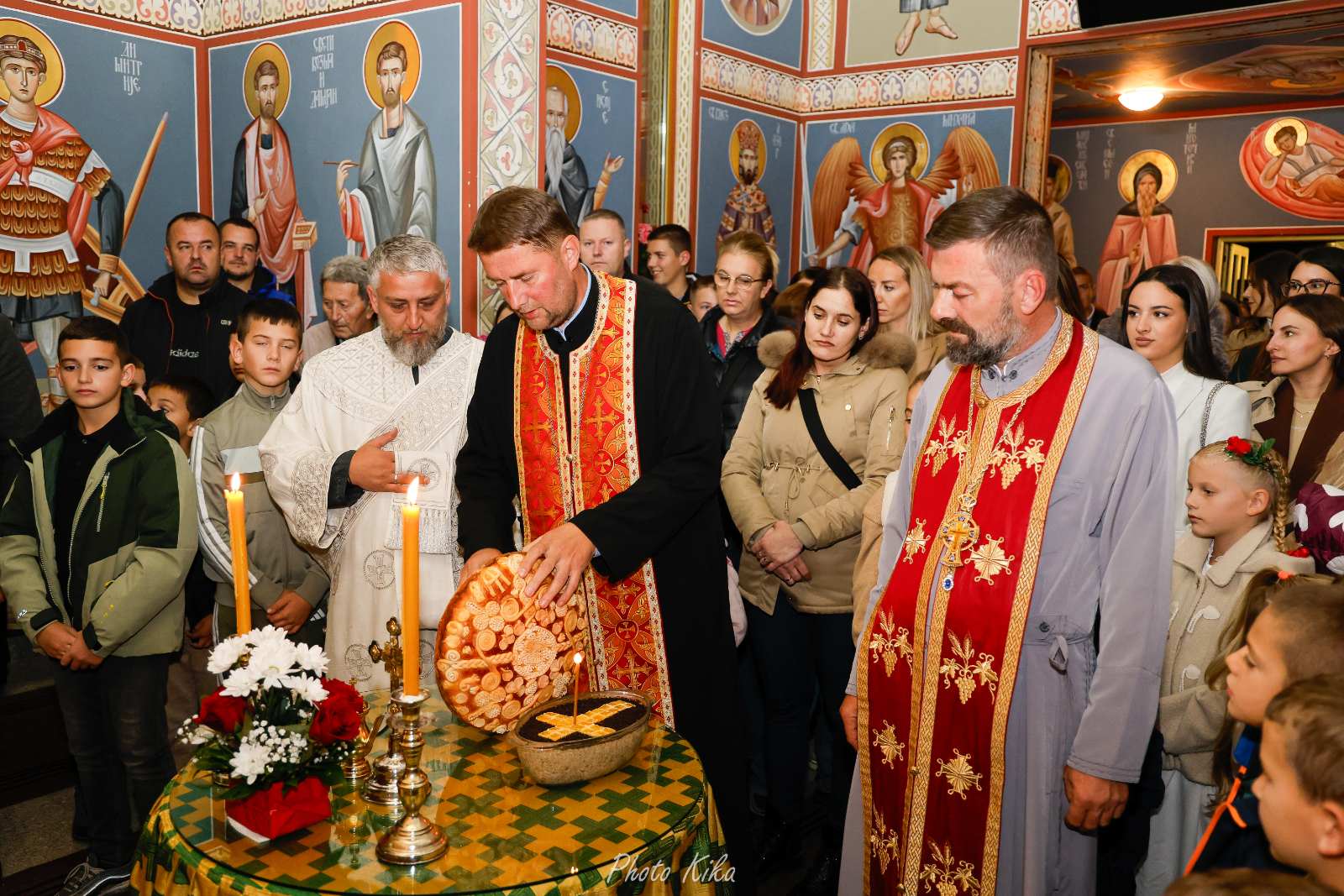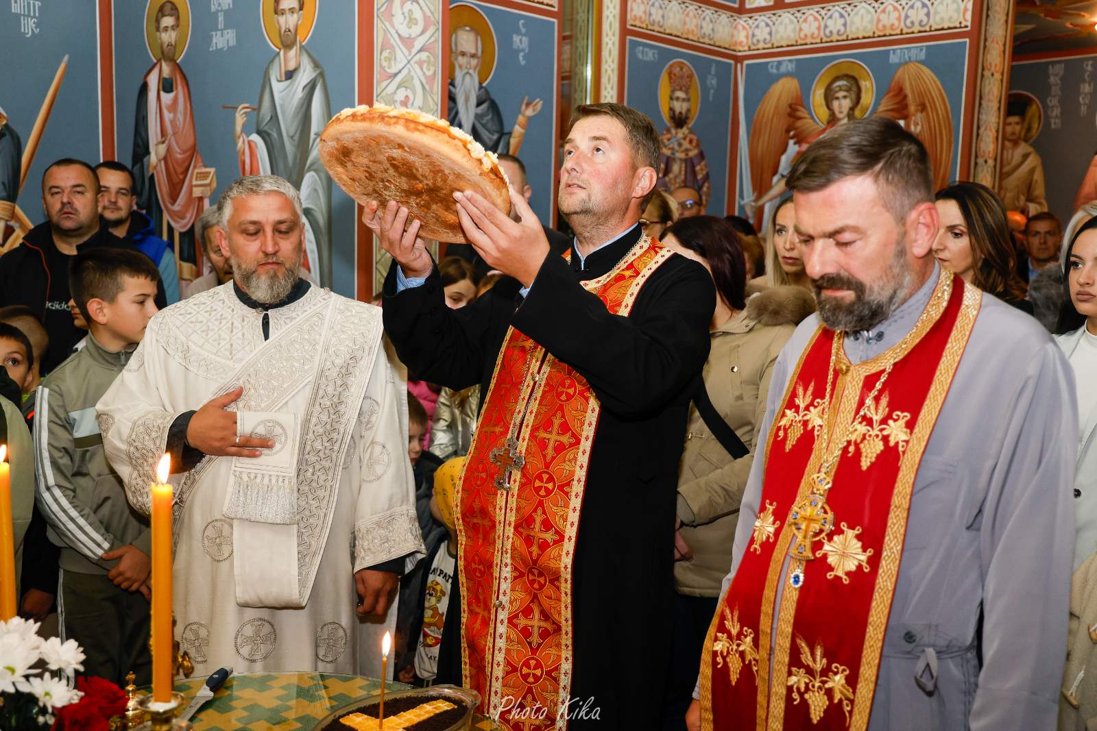 - Драга браћо и сестре, окупили смо се на овај велики празник Свете Петке Параскеве, коју су славиле наше мајке, а ево и ми данас. Многи су се поклонили данас њеним моштима у Јашију у Румунији. Света Петка је читав свој живот била у пустињи, борила се са свим земаљским страстима, демон је искушавао, а она се изборила кроз та искушења тражећи и нашавши Бога. Знамо да је била сахрањена у Јашију, а онда се једном свештенику Георгију јавила у сну Преподобна мати Параскева да је откопају. Они су то урадили и нашли њено нетрулежно тијело. Послије тога, једно вријеме је почивала у Цркви Ружици у Београду, па је касније опет враћена у Јаши. Желим овом приликом да свима честитам славу, да вас Света Петка чува у све дане вашег живота. Да вас буде још више ако Бог да, да чувамо породицу јер је то нешто најсветије што имамо, наша породица и наша дјеца – поручио је отац Младен.