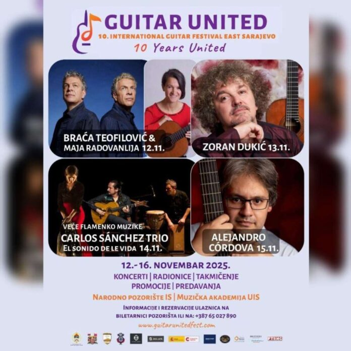 Фестивал „Гитар јунајтед“ трајаће до нед‌јеље, 16. новембра. Сви концерти биће одржани у Народном позоришту Источно Сарајево, а остале активности на Музичкој академији Универзитета у Источном Сарајеву.