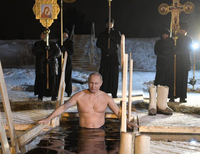 Шеф Руског фонда за директна улагања и специјални изасланик руског предсједника за инвестиције и економску сарадњу са иностранством Кирил Дмитријев објавио је видео-снимак на којем је Путин приказан како традиционално три пута зарања у ледену воду.