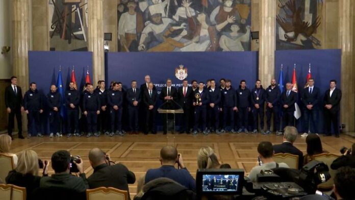 Предсједник Србије Александар Вучић, изјавио је током пријема златних ватерполиста да није очекивао освајање првог мjеста, али да је утолико срећнији због великог достигнућа и захвалио се „делфинима“ на радости коју су донијели српском народу.